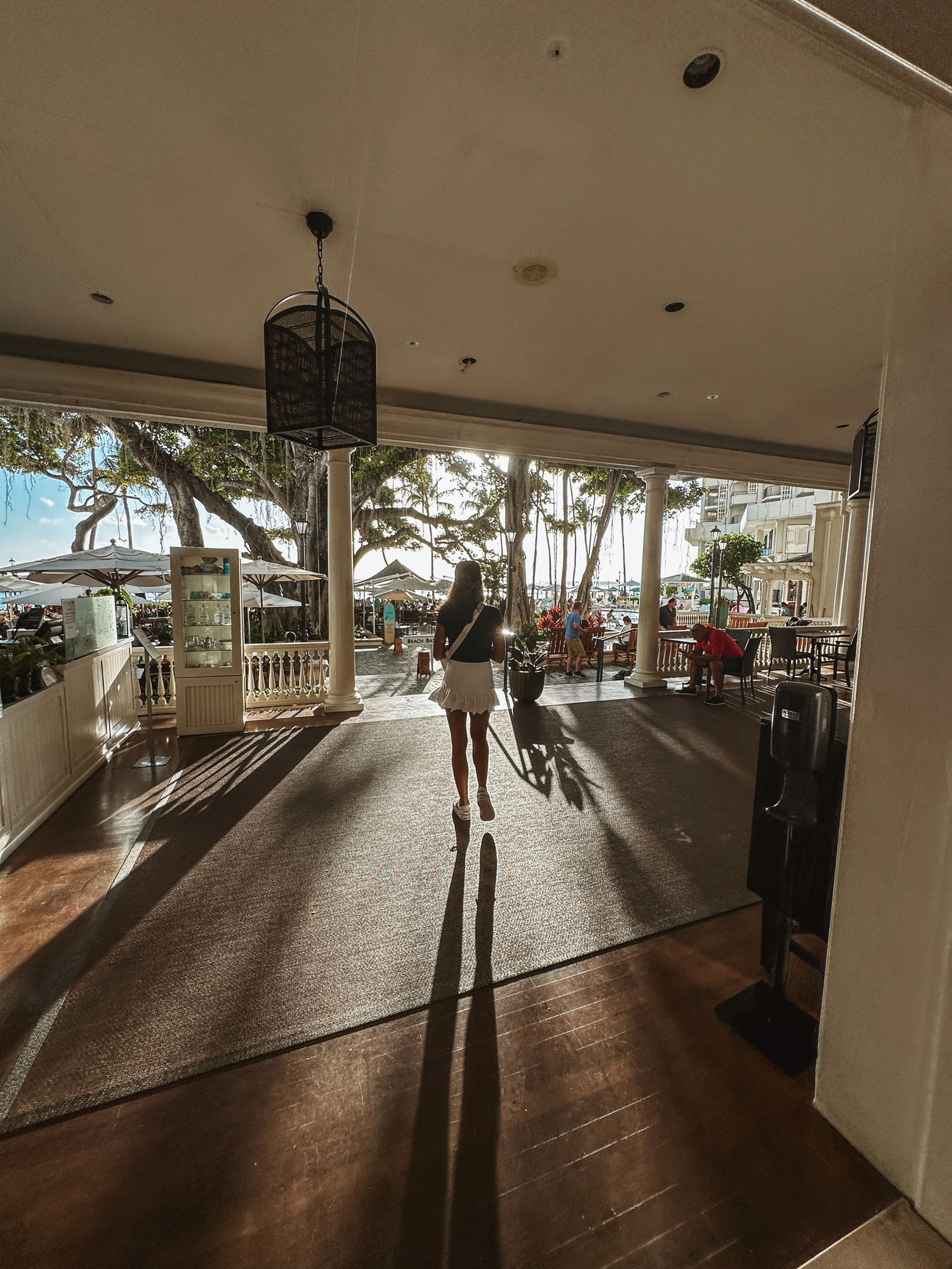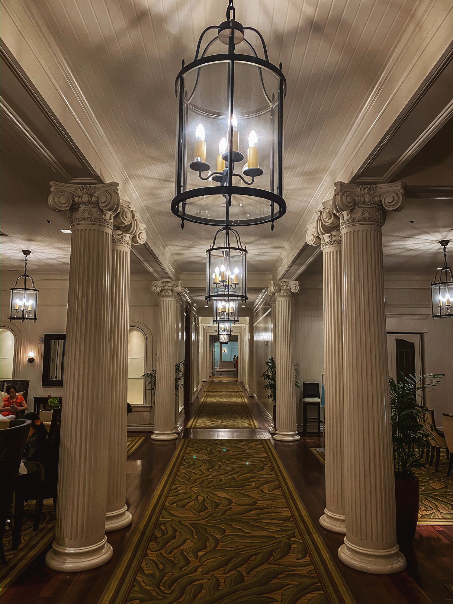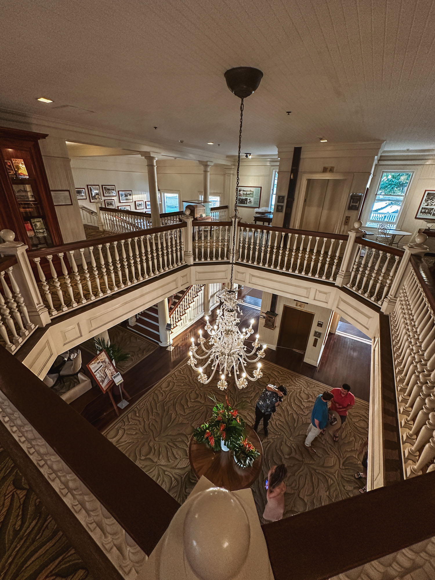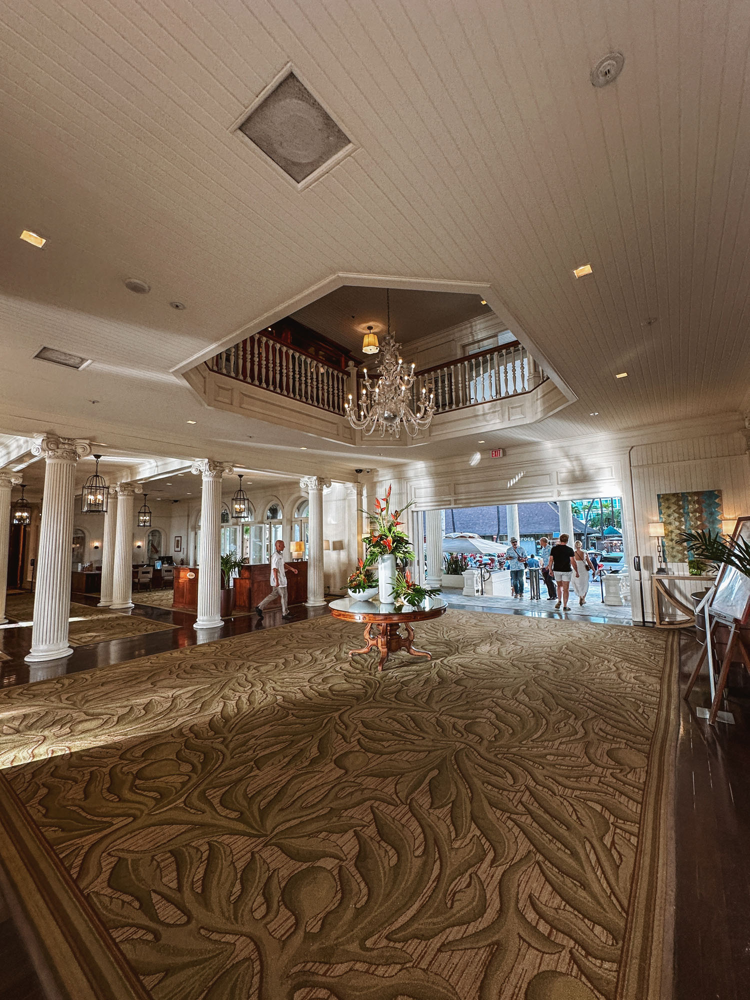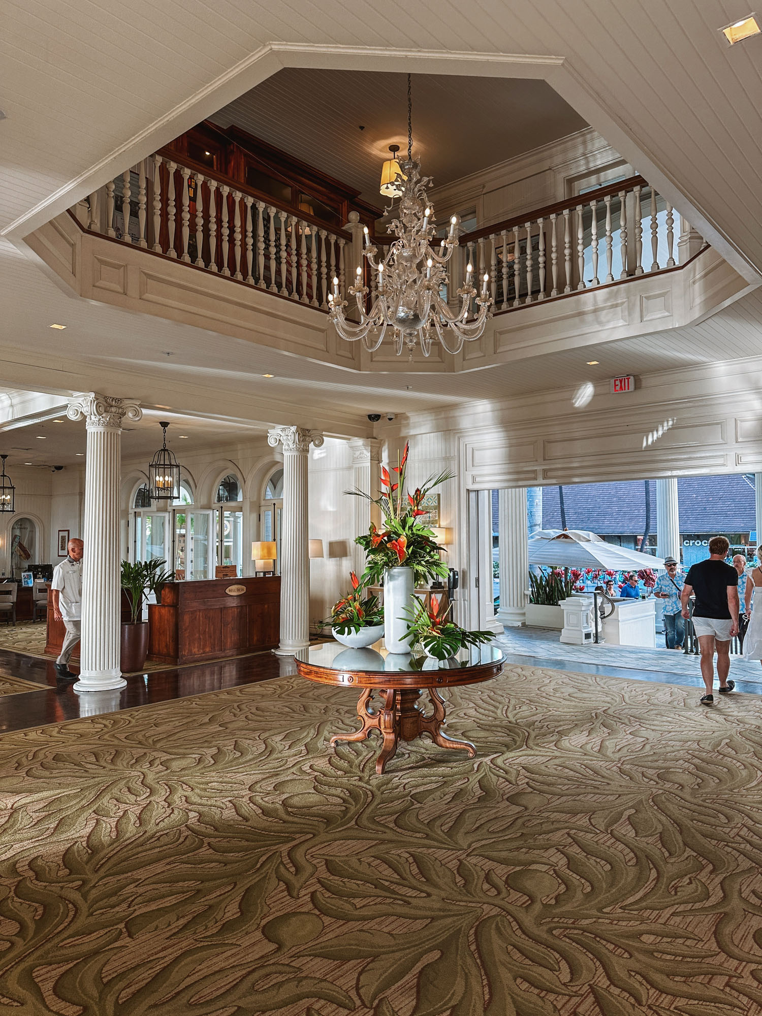 Upon entering, you are immediately enveloped by a serene, white ambiance and a pristine, clean aesthetic that defines its colonial architecture. The lobby is absolutely gorgeous, with its grand staircase, elegant furnishings, and fresh floral arrangements creating an inviting and sophisticated atmosphere. One of its most charming features is the open-air design at the front, where you’ll find an array of classic rocking chairs. Here, you can leisurely rock and watch the vibrant tapestry of people strolling by on Kalakaua Avenue. The seamless transition from the valet area all the way back to the beach, without a single door to open, truly embodies the relaxed, welcoming spirit of Hawaii – what an incredible vibe!