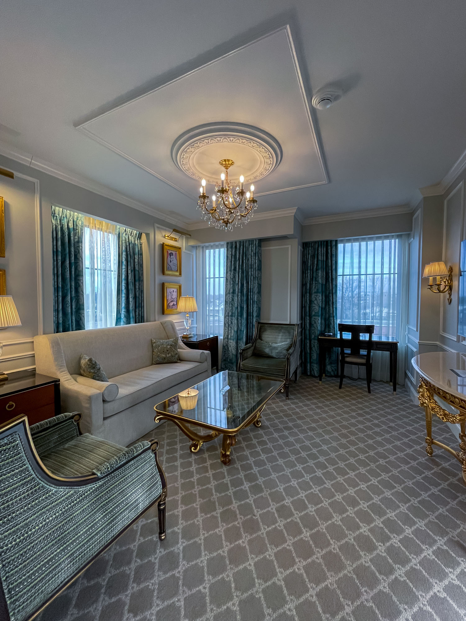 We were in for an incredible treat when we were handed our room keys: we had been upgraded to the Presidential Suite for our entire stay! Upon entering the room, we were greeted with a long hallway, including an immediate, well-appointed half-bathroom on our right—perfect for guests.