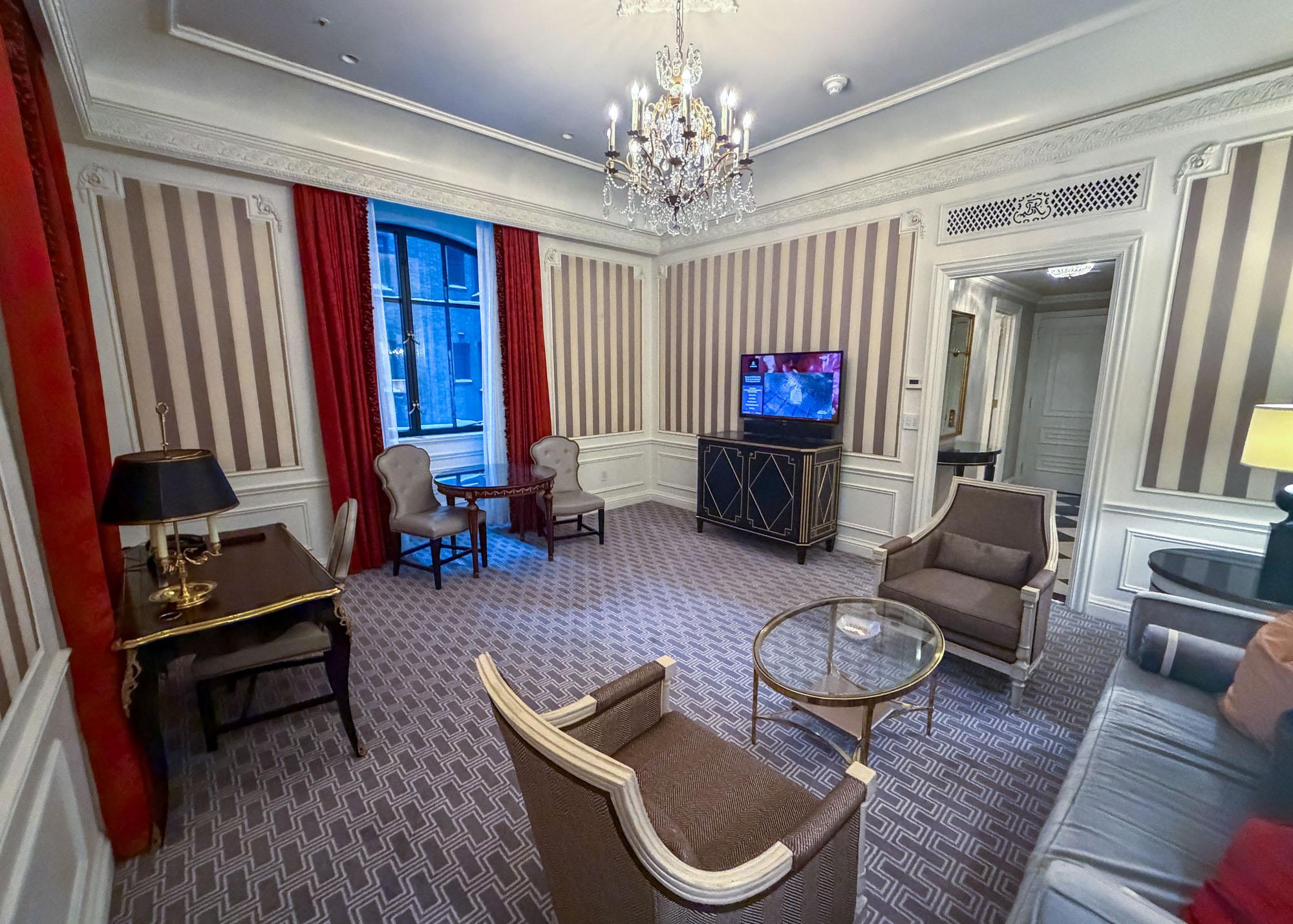- Room Type: St. Regis Suite-Butler Service- 1 King, Bathrooms: 2, Whirl pool fits 2, 1100sqft/99sqm, Living/sitting, Separate living room