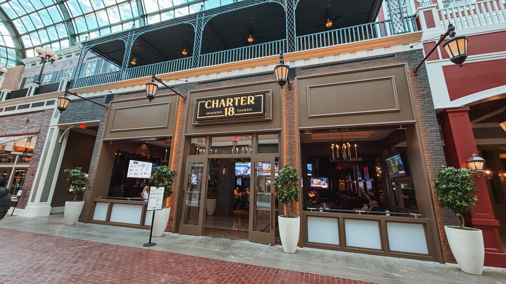 Chapter 18 (Sports Bar) Casual American / Sports Bar Had a decent steak dinner. Food and beverage costs were extremely low ($12 glass of wine). The sports bar section has screens everywhere, making it great for watching any game. Lunch & Dinner (Typically 11:00 AM – Late)