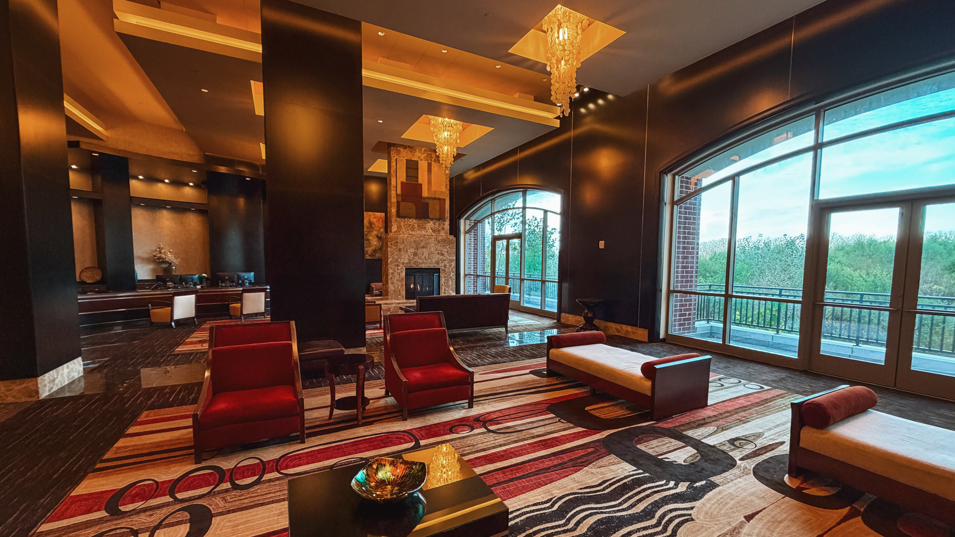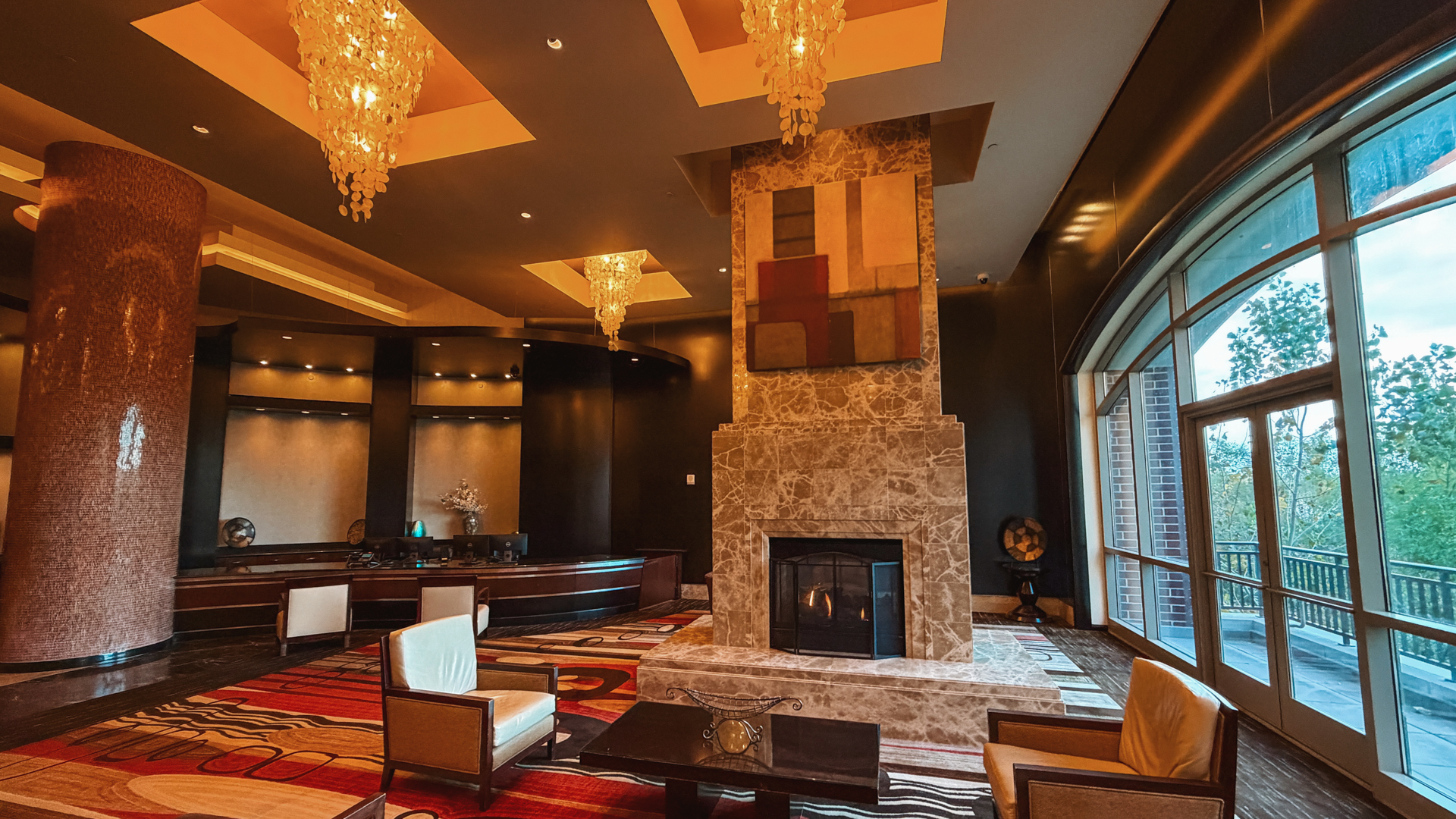 Driving into St. Charles during the cold season, the initial vibe of the area wasn’t immediately exciting, certainly nothing like pulling into a St. Regis in the Riviera Maya. As we passed the hotel on the highway, looking down at the property along the Missouri River, the exterior didn’t seem too appetizing. However, when we rounded the corner and entered the grand, impressive entrance, I was immediately taken aback by how nice the place actually appeared. Once the driver dropped me off at the front door and I walked in, I was immediately blown away by how luxurious and beautiful this hotel and casino truly are!