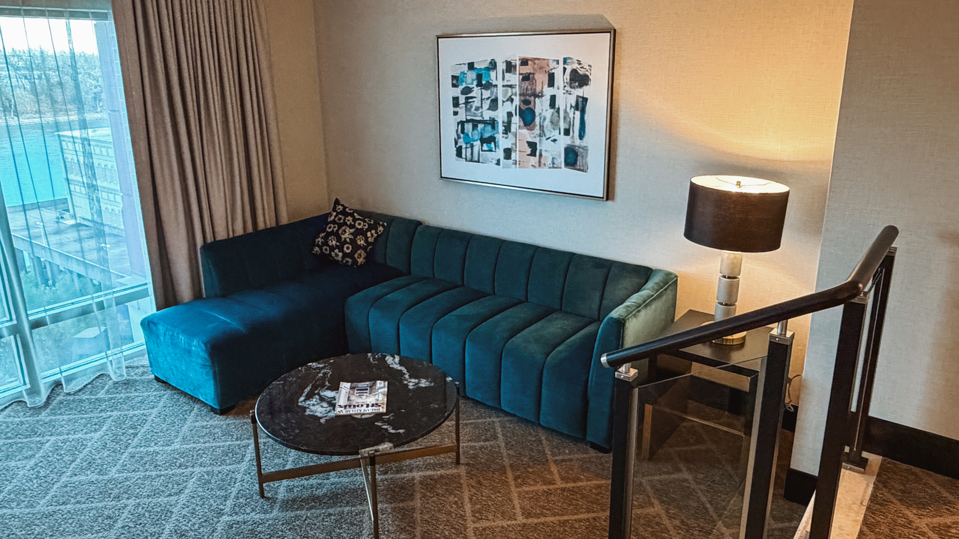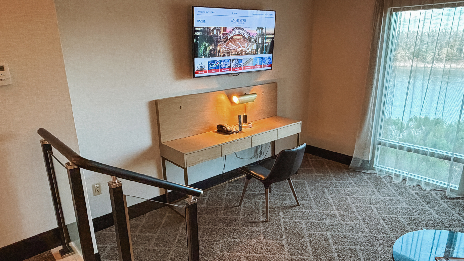 I had booked a traditional room, not knowing what to expect, but opening the door, I was genuinely blown away at the high quality of the accommodation. It instantly reminded me of the opulent design found in the Venetian and Palazzo properties in Vegas. This level of luxury was completely unexpected! The room included a massive king bed that was super comfy and two televisions, both equipped with Netflix. The spacious office space was well-utilized, offering a view overlooking the Missouri River. While the actual view wasn’t the most beautiful thing to look at, knowing there was moving water nearby made the setting really nice. The massive bathroom was fully stocked with amenities, though I did find it odd that a robe and slippers were missing, perhaps indicating a difference from a full suite upgrade. One strange service note was that my room was not cleaned for the duration of my three-night stay.