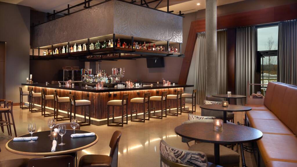 One of the absolute highlights of this hotel is the dining scene. The second-floor lounge, Ember & Ice, is an experience in itself. With a central fireplace and a focus on craft cocktails, it creates a fantastic, vibrant atmosphere. It truly captures a luxurious, cozy vibe—like being in a chic Colorado mountain lodge—but located right outside the Twin Cities.
