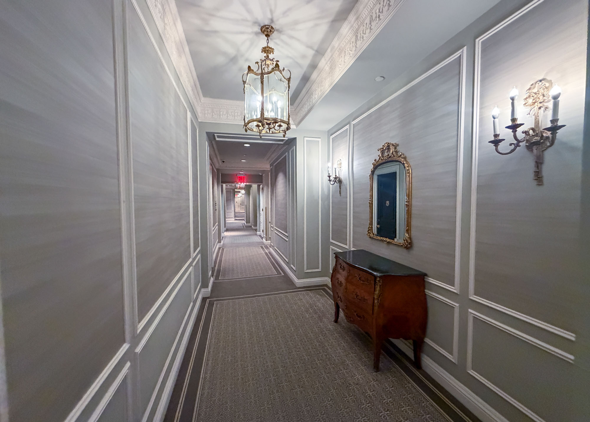 As you walk through the entryways, everything feels remarkably grand. The hallways are decorated with beautiful lighting, elegant pictures, and massive crystal chandeliers that cast a warm, golden glow over the marble floors. This refined aesthetic extends to every common area, where the air of Gilded Age opulence remains perfectly preserved.