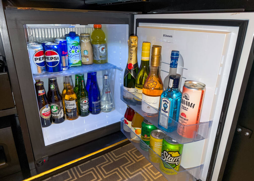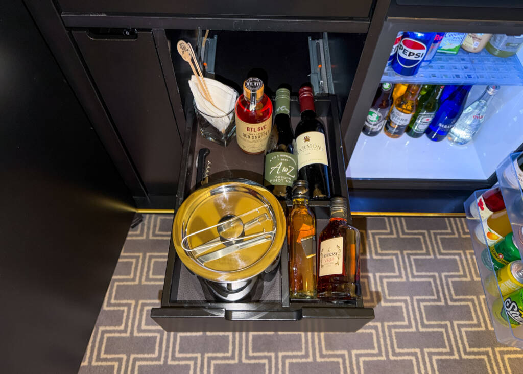 Mini Bar: Excellent bar area in the This St. Regis Suite fully stocked with snacks, food, alcohol, soda, and water. While personal cold storage is limited, you can remove items from the refrigerator without being charged.