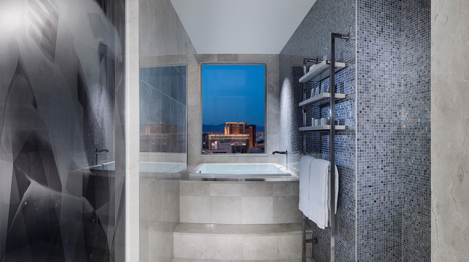 The rooms at The Cosmopolitan are fantastic! They’re modern, fun, and so well-designed. The suites I’ve stayed in often have a massive walk-in shower that leads to a big jacuzzi tub overlooking the Strip. It’s such a neat and unique setup! The decor is beautiful, and I love how the beds are positioned so you can just lie there and gaze at the glittering city lights. It’s so romantic. The way the room is designed, it feels like it’s a part of the city, not just a place to sleep. The attention to detail, from the artwork on the walls to the sleek, modern furniture, really makes you feel like you’re staying somewhere special. The bathrooms are pure luxury too, with spacious countertops and high-end fixtures that just add to the whole pampered vibe.
