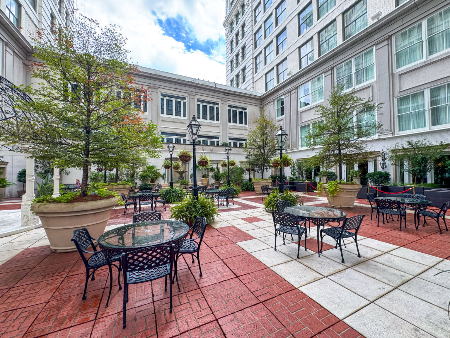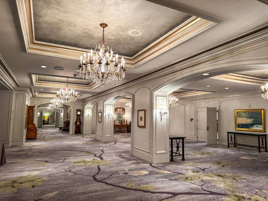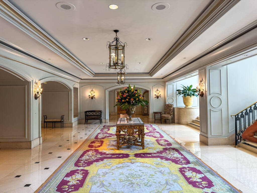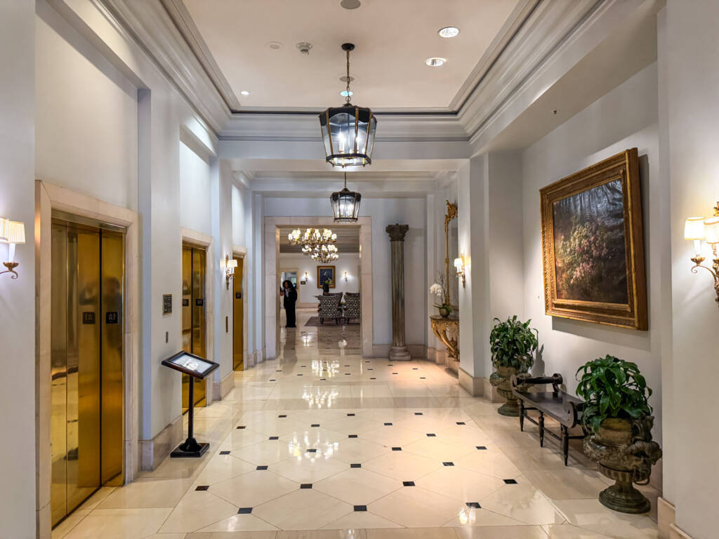 The 3rd Floor Lobby: The ground floor contains the valet and street entrance, but the main check-in, the gorgeous floral display, the lobby, the Club Lounge, and the main outdoor terrace are all located on the 3rd floor. This layout is part of the building’s historic charm (it occupies the former Maison Blanche department store).