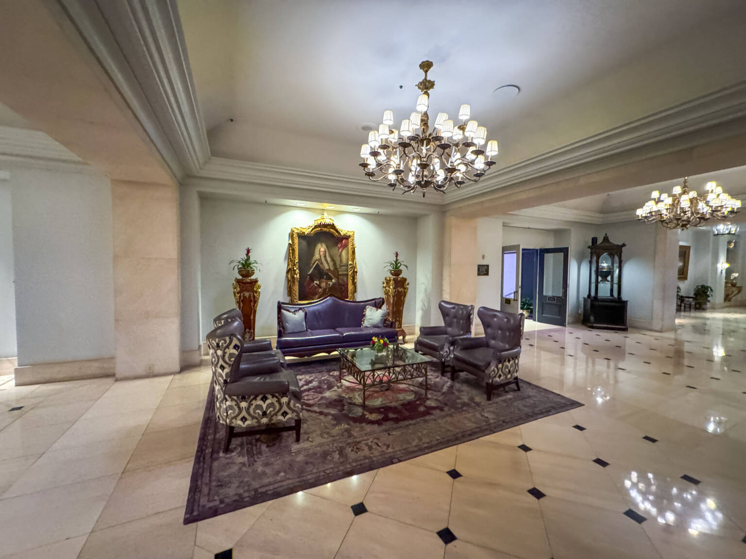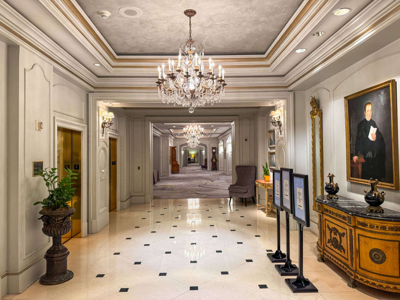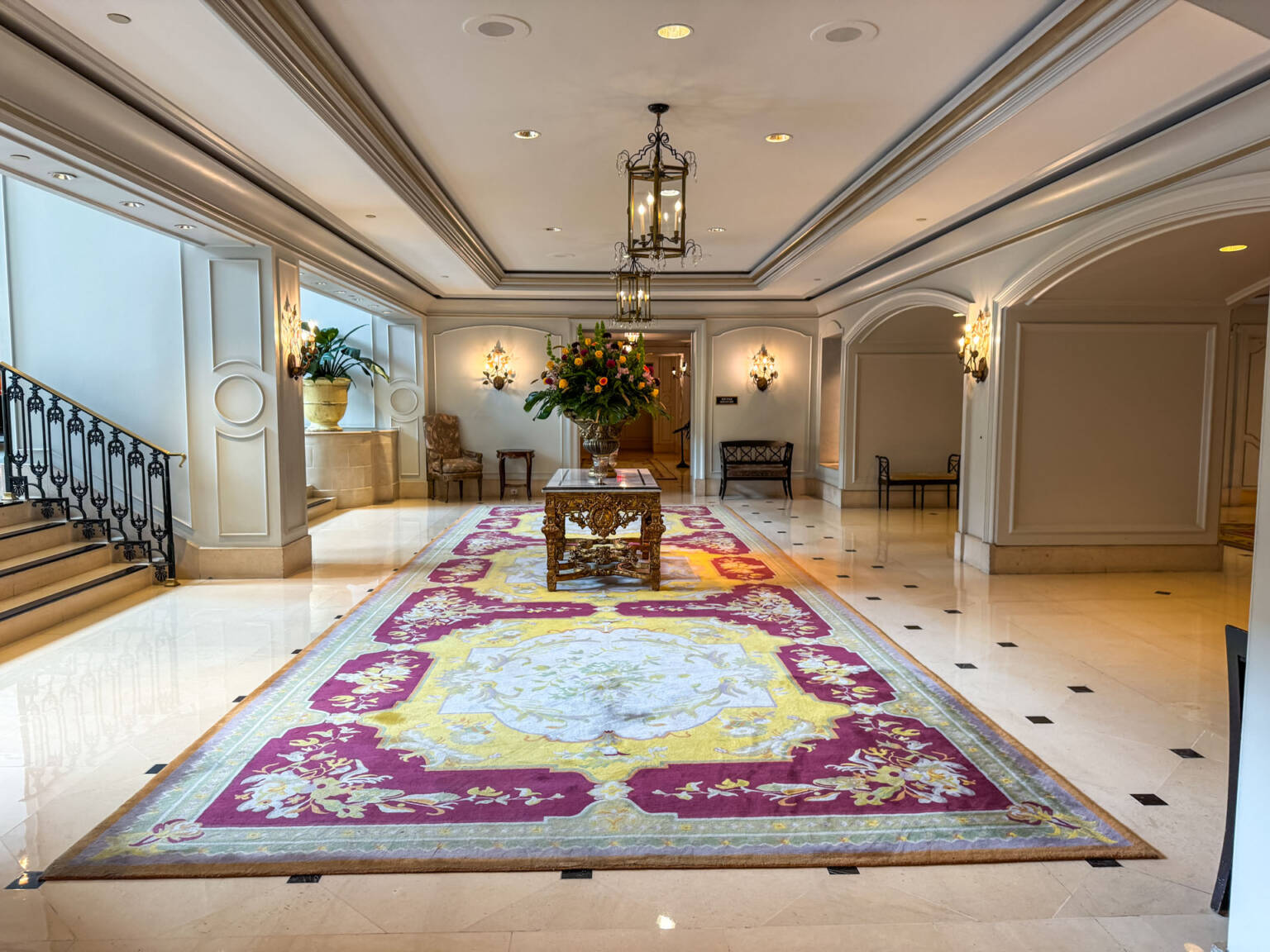 The 3rd Floor Lobby: The ground floor contains the valet and street entrance, but the main check-in, the gorgeous floral display, the lobby, the Club Lounge, and the main outdoor terrace are all located on the 3rd floor. This layout is part of the building’s historic charm (it occupies the former Maison Blanche department store).