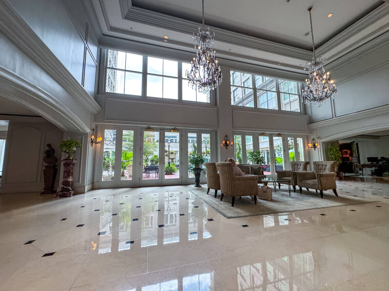 Unique Lobby: A stunning, traditional Ritz-Carlton lobby and terrace located uniquely on the 3rd floor.