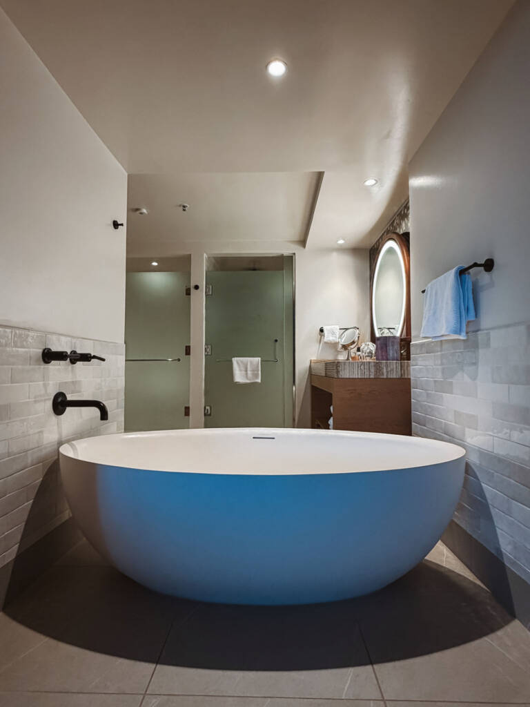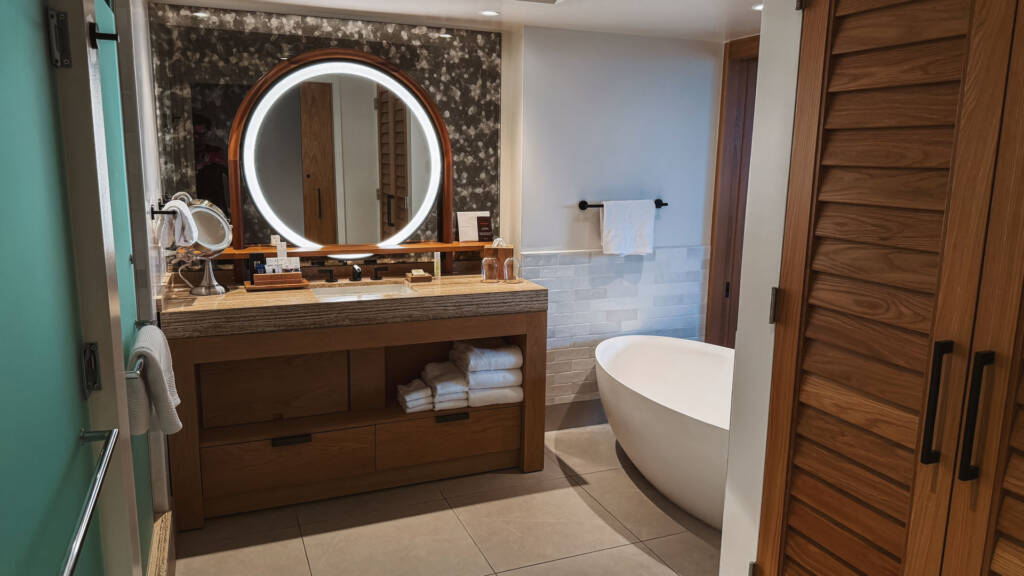 • Mirrors: The complete absence of a full-length mirror in a luxury suite is a significant oversight for travelers preparing for events or even just a day out. We checked every possible location—the armoire, the closet, the back of doors—but found only a small, awkward one-foot-tall mirror by the front door and the two-foot diameter circle vanity mirror in the bathroom. This seemingly minor detail had daily practical implications.