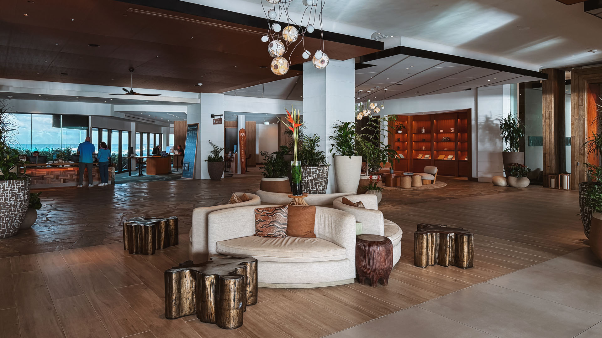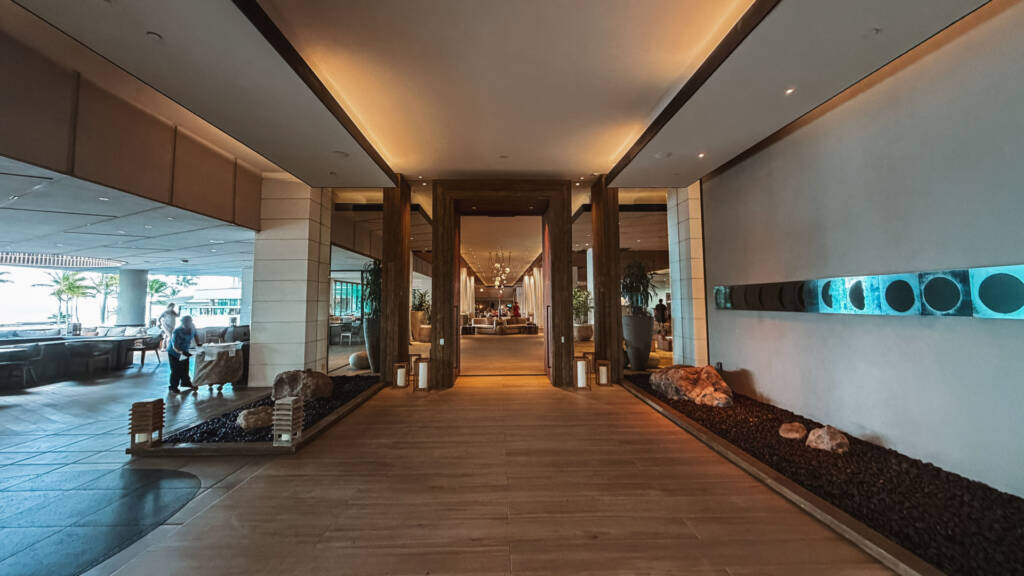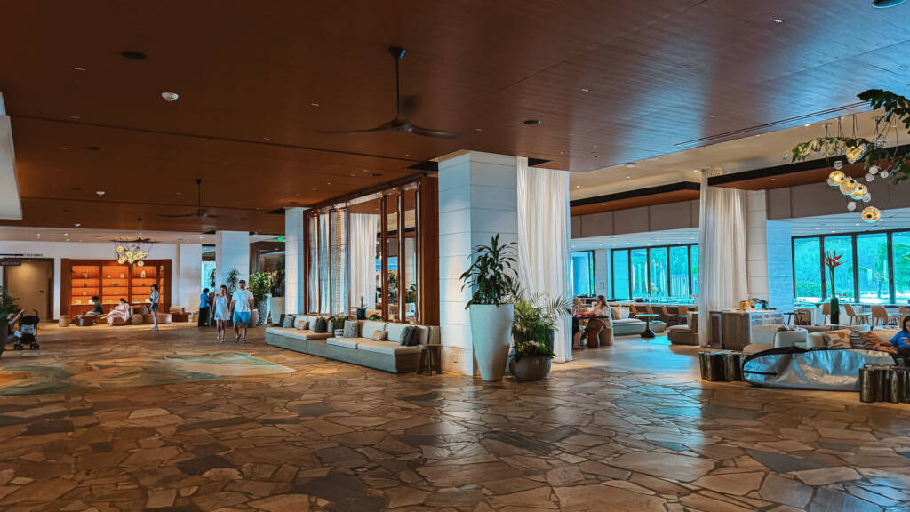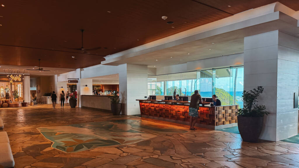 The main entryway welcomes guests into a beautiful, open-air lobby, typical of many grand Hawaiian resorts. While they have the capability to close windows for weather, the overall vibe is distinctly outdoors. Off the lobby, you’ll find stands offering tourism guides, which we skipped.