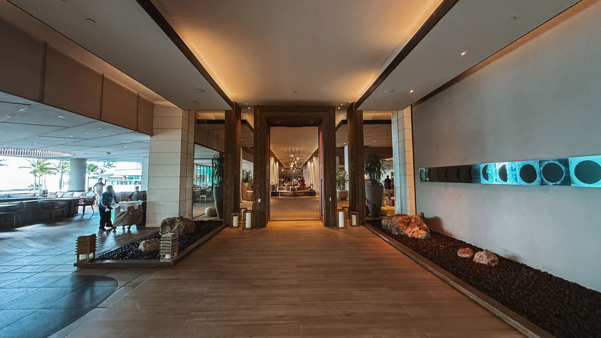 The main entryway welcomes guests into a beautiful, open-air lobby, typical of many grand Hawaiian resorts. While they have the capability to close windows for weather, the overall vibe is distinctly outdoors. Off the lobby, you’ll find stands offering tourism guides, which we skipped.