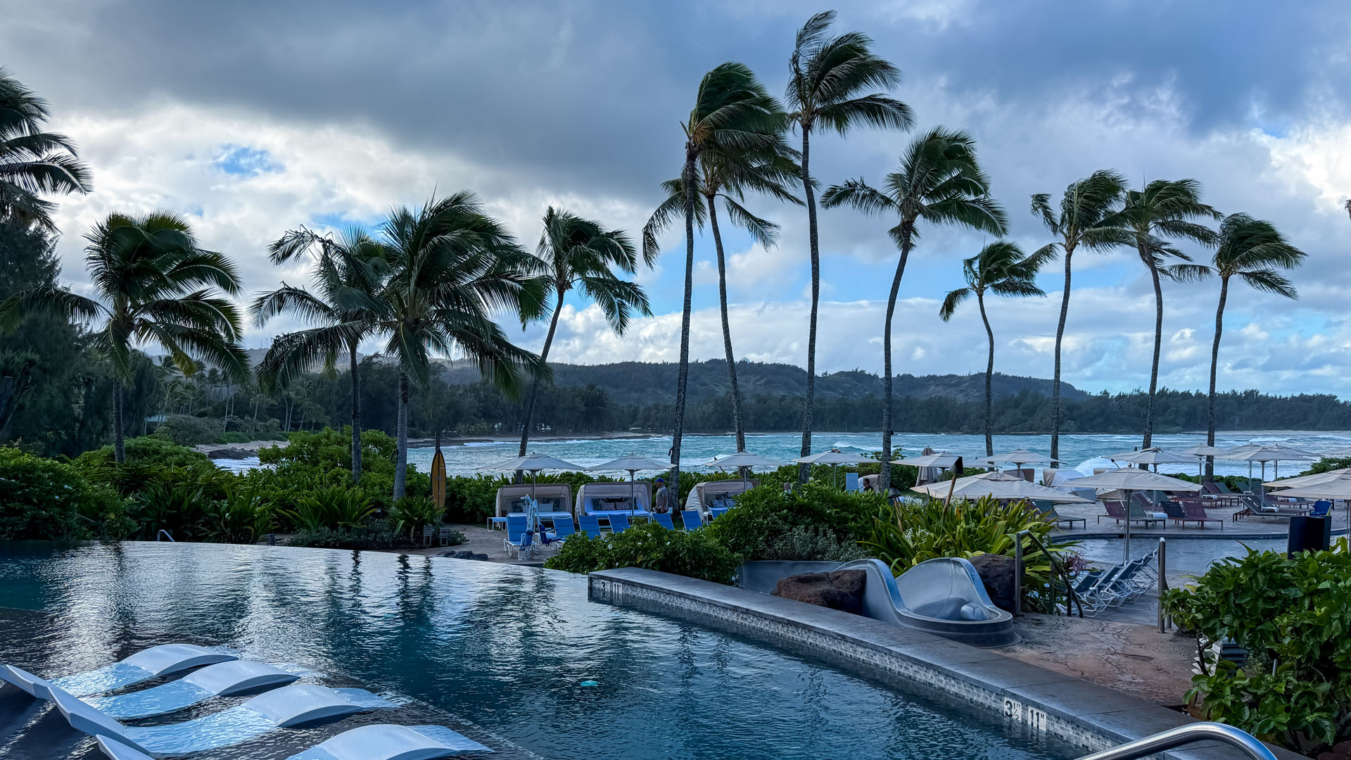 The resort boasts a massive main pool and a very large outdoor Jacuzzi that attracts many guests. However, we preferred the tranquility of the direct beach access. The property provides complimentary chairs and beach towels at a dedicated stand, making a day by the ocean effortless. Importantly, the beach area benefits greatly from its location within a bay protected by large jetties. This natural and man-made barrier ensures the water is traditionally quite calm, providing a gentle environment ideal for wading, paddleboarding, or simply relaxing on the sand, a stark contrast to the rougher waters found on other parts of the North Shore.