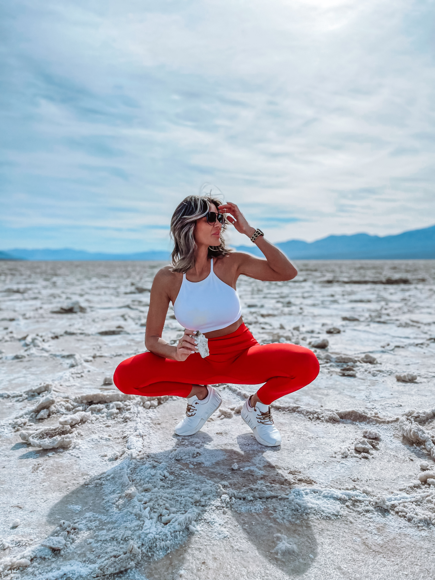 The Walk & Geology: Everyone heads out onto the immense, blinding white salt flats. The ground here is not just solid; it’s a vast expanse of pure sodium chloride (table salt). For the best photography and a truly unique texture, walk deeper—at least 15 to 20 minutes from the boardwalk. The deeper you go, the more the ground shifts from smooth, clean white to dry, unique brownish, polygonal patterns. These hexagons form as water evaporates and salt crystalizes, cracking the surface layer. This is where your wide-angle lens, tripod, and camera will truly shine.